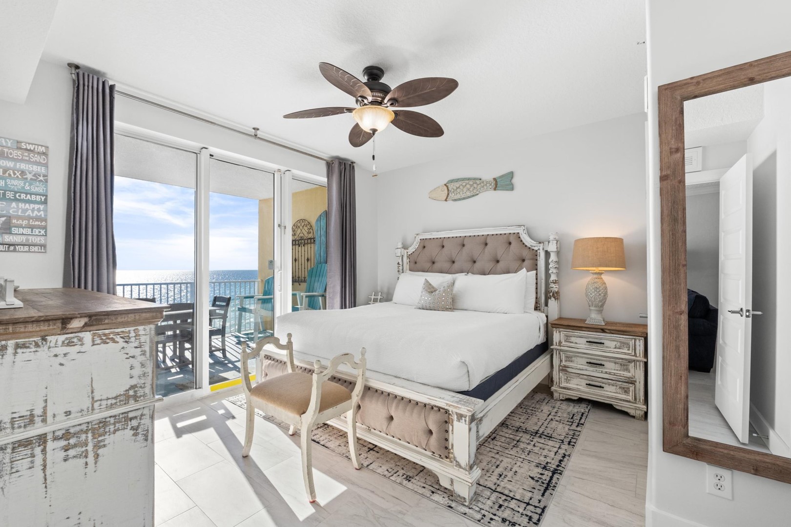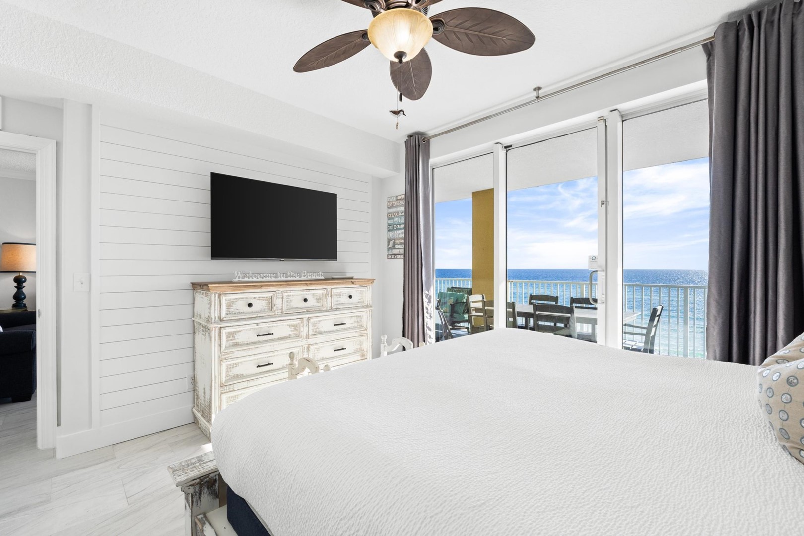 * Bedroom 1 - Gulf View, King Bed, 42" TV with Blue Ray, Balcony Access, En Suite Bathroom