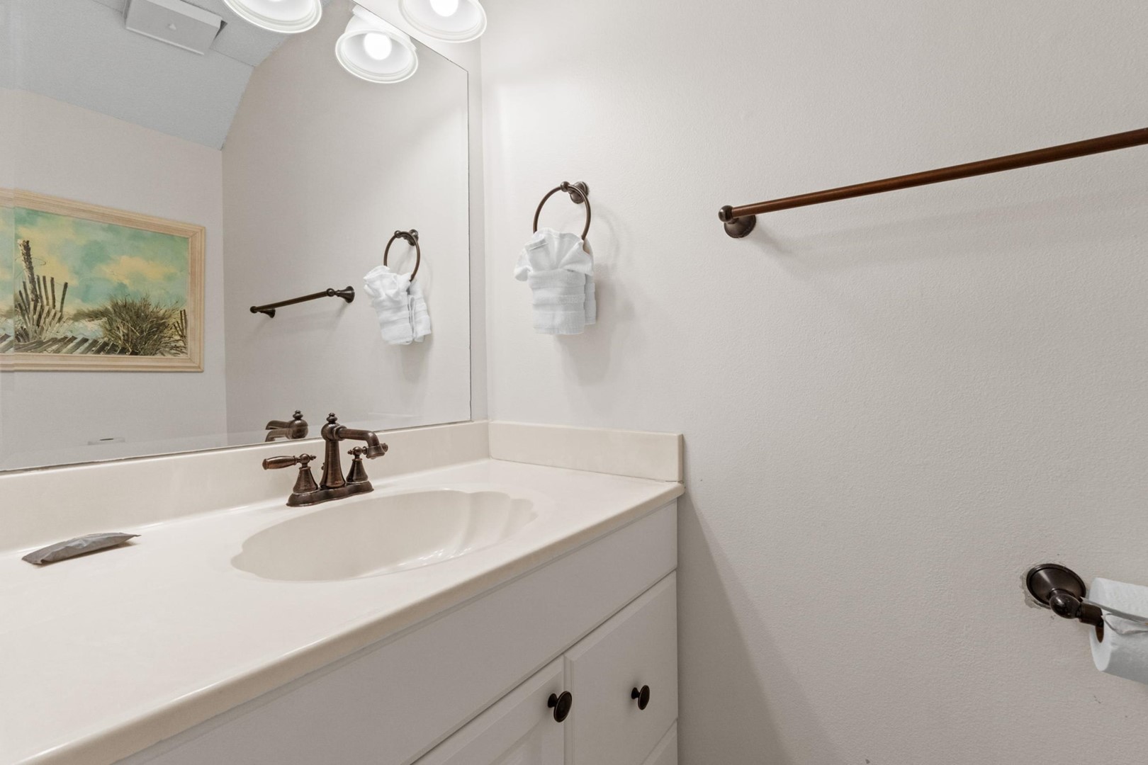 Panhandle Getaways furnishes a few essential items for guests to utilize until they can get to the grocery store. Initial Supplies include: Dishwasher soap, small washing machine powder, each bathroom has amenities (like hotel but NOT restocked) shampoo, conditioner, soap bar. One roll of toilet paper in each bathroom & one paper towel roll in the kitchen. All bed linens and towels are provided. We encourage guests to bring beach towels for use at the pool and beach.
